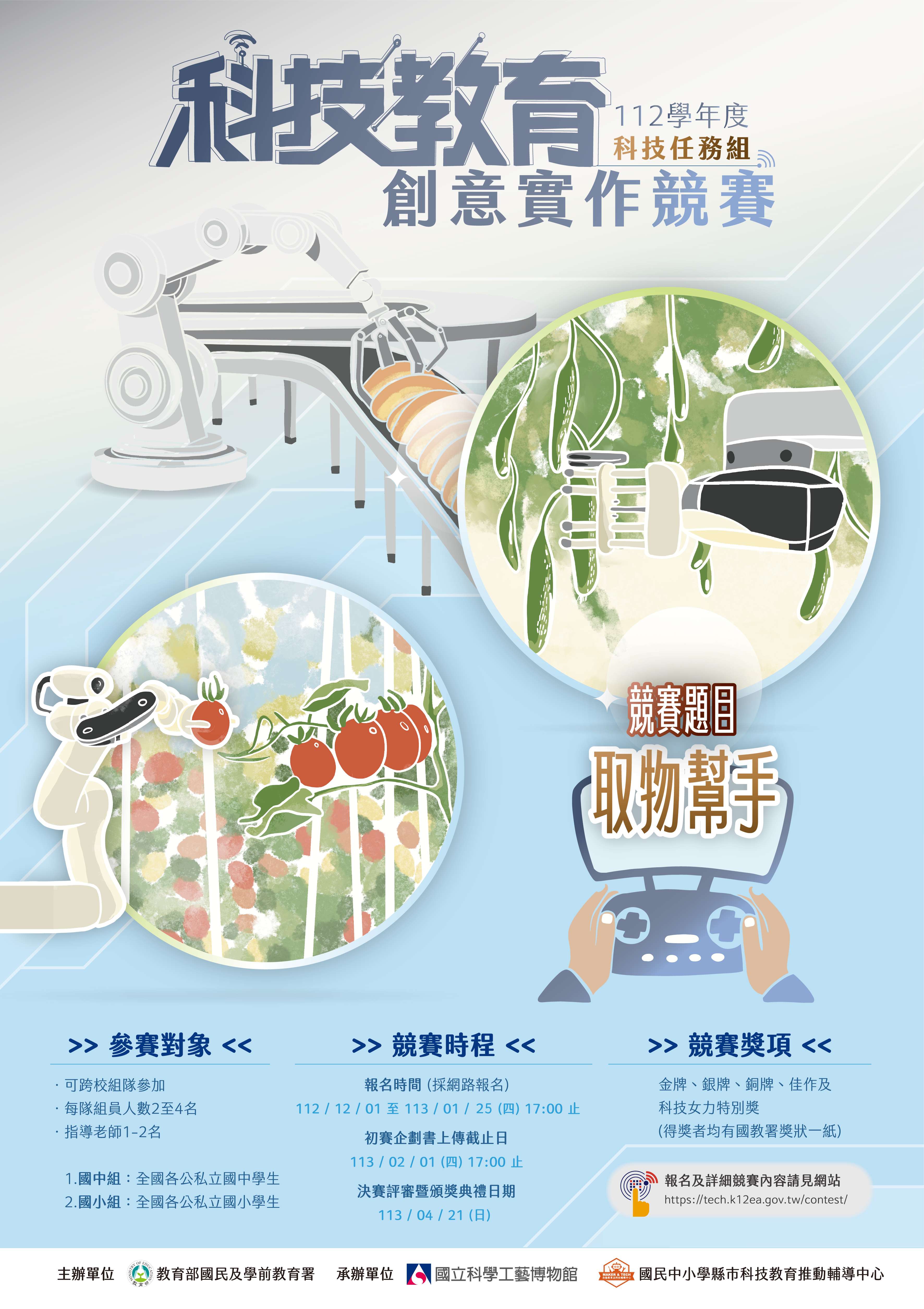 主旨:為教育部國民及學前教育署(下稱國教署)辦理「112學年度科技教育創意實作競賽-科技任務組」報名時間延長至113年1月25日(星期四)一案,請查照。