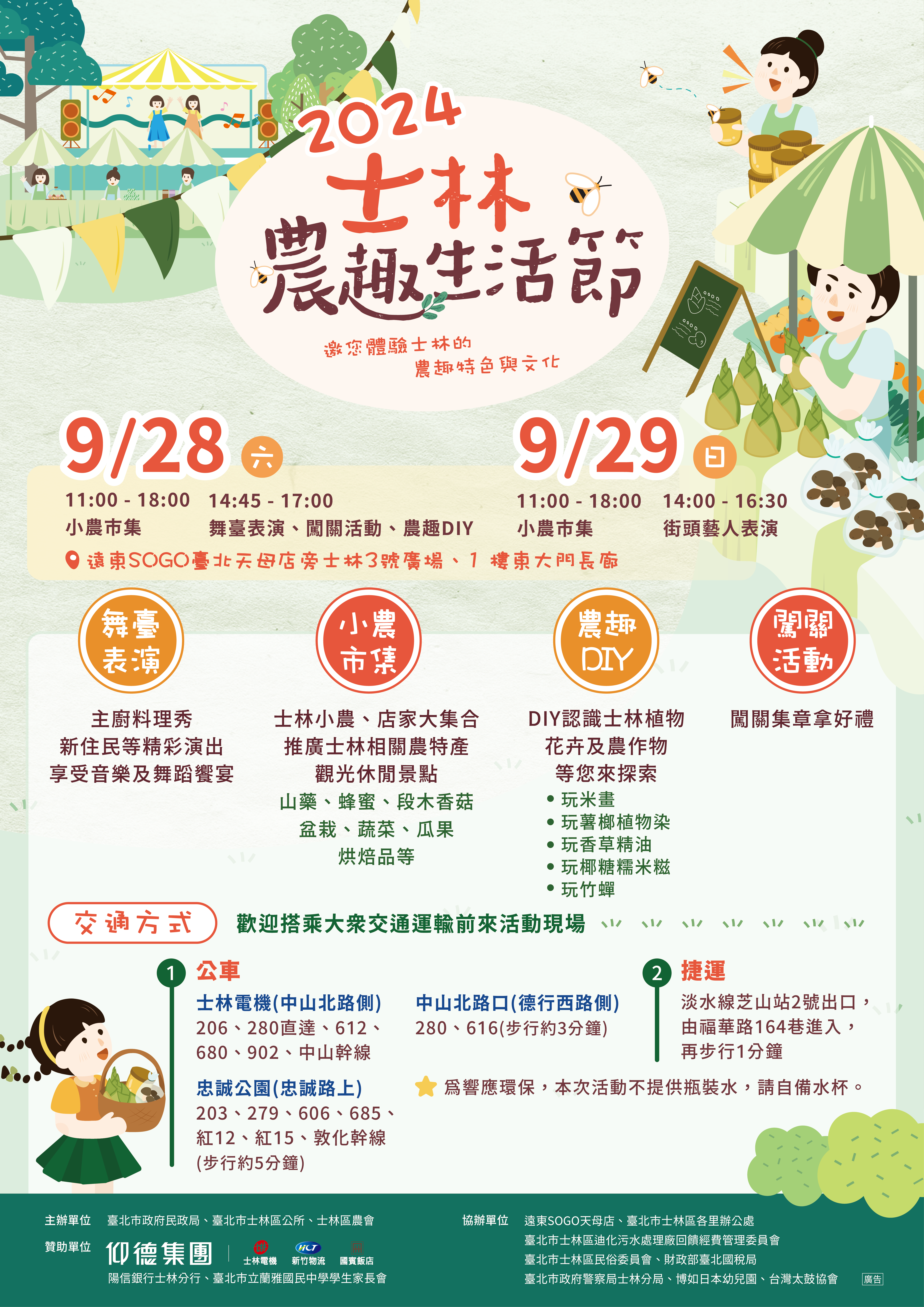 臺北市士林區公所所與士林區農會攜手合作,精心規劃豐富內容,邀民眾 一起體驗士林的農趣特色與文化。