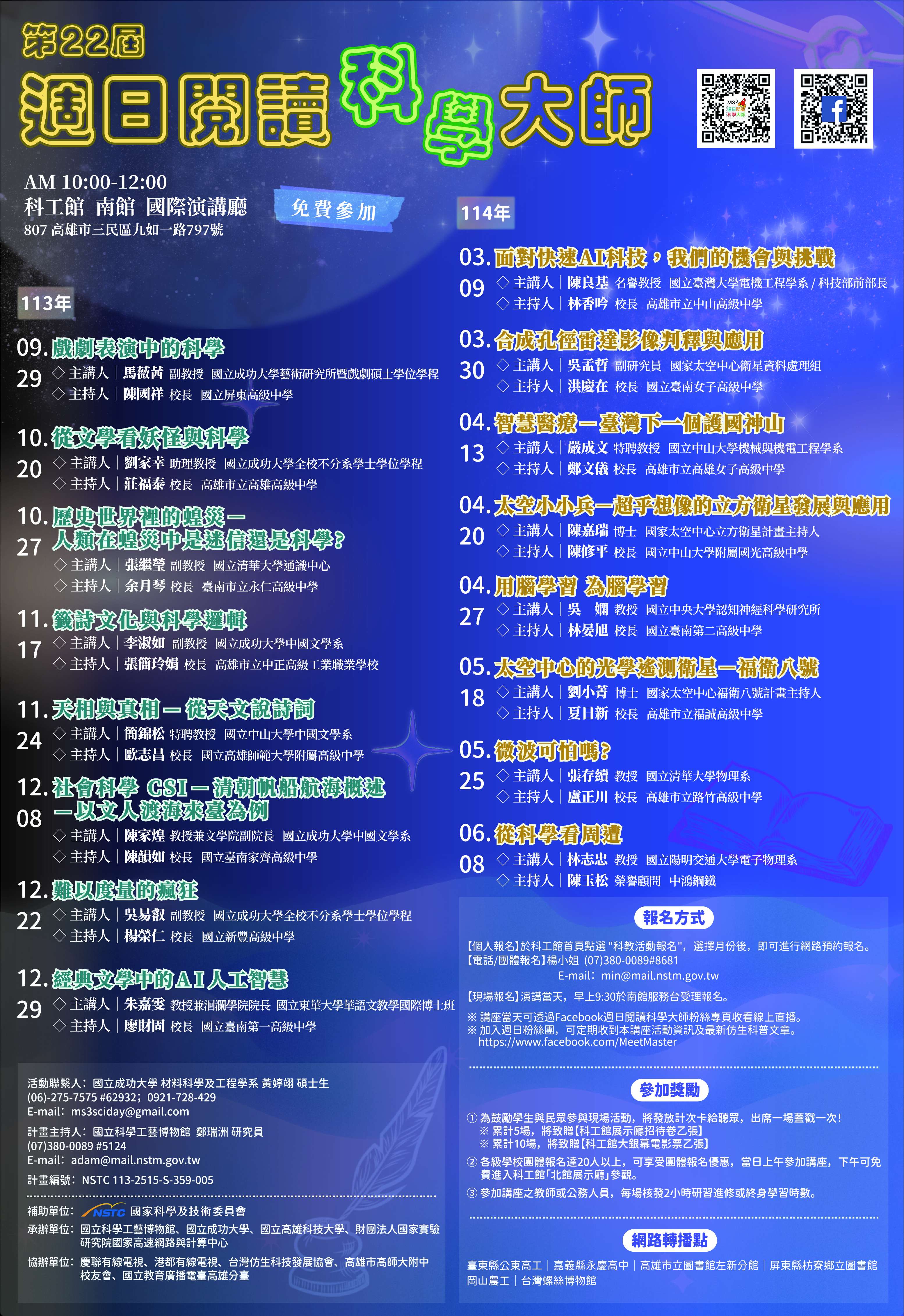 (四)講座提供現場直播,可透過週日閱讀科學大師官網即時觀看。