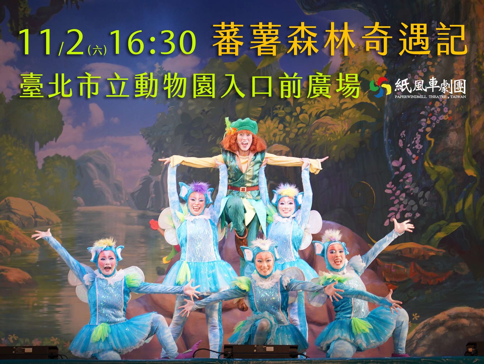 11/2(六)紙風車劇團在台北市立動物園前廣場演出<蕃薯森林奇遇記>