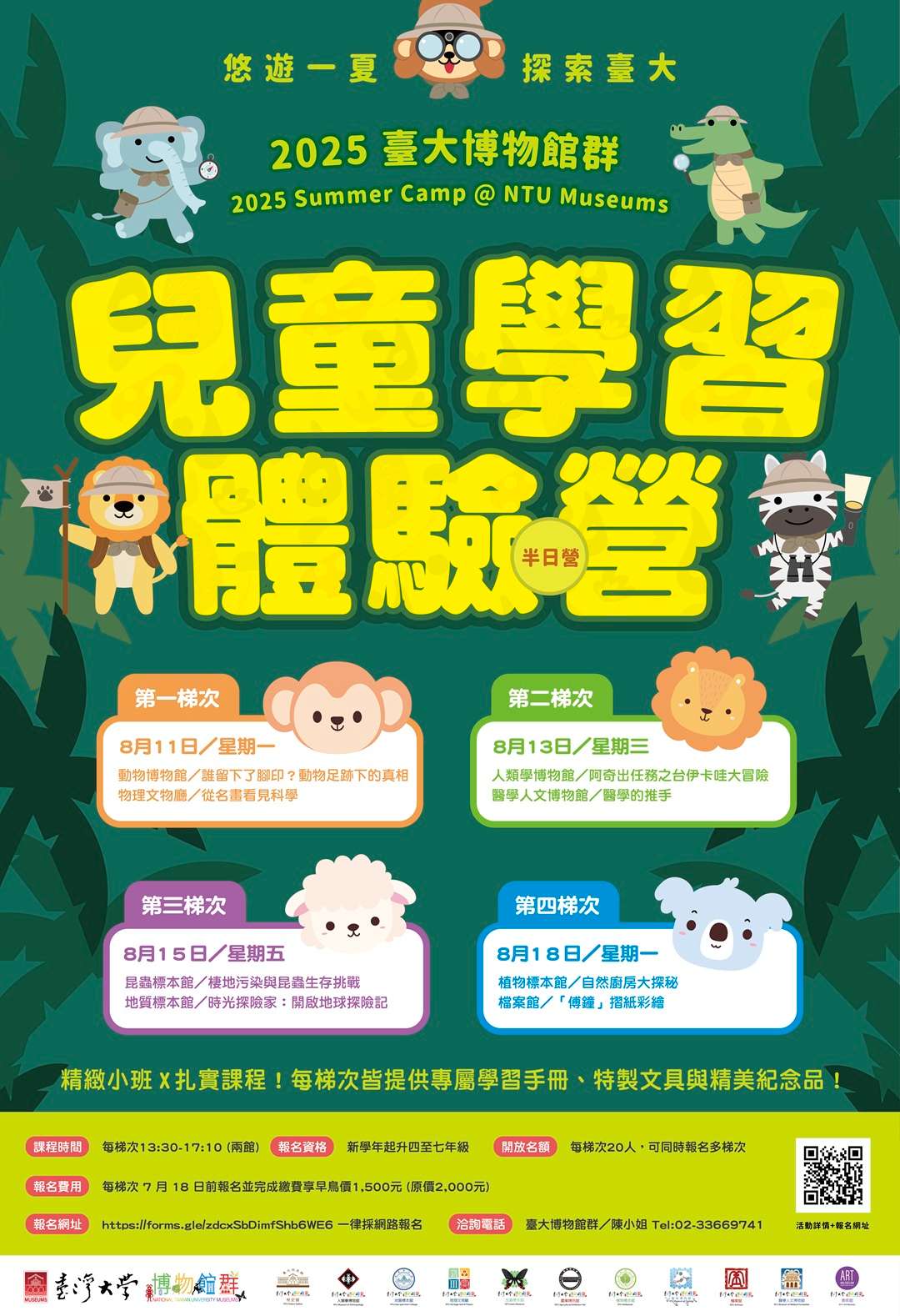 二、「悠遊一夏 探索臺大:2025臺大博物館群兒童學習體驗 營」相關資訊如下: