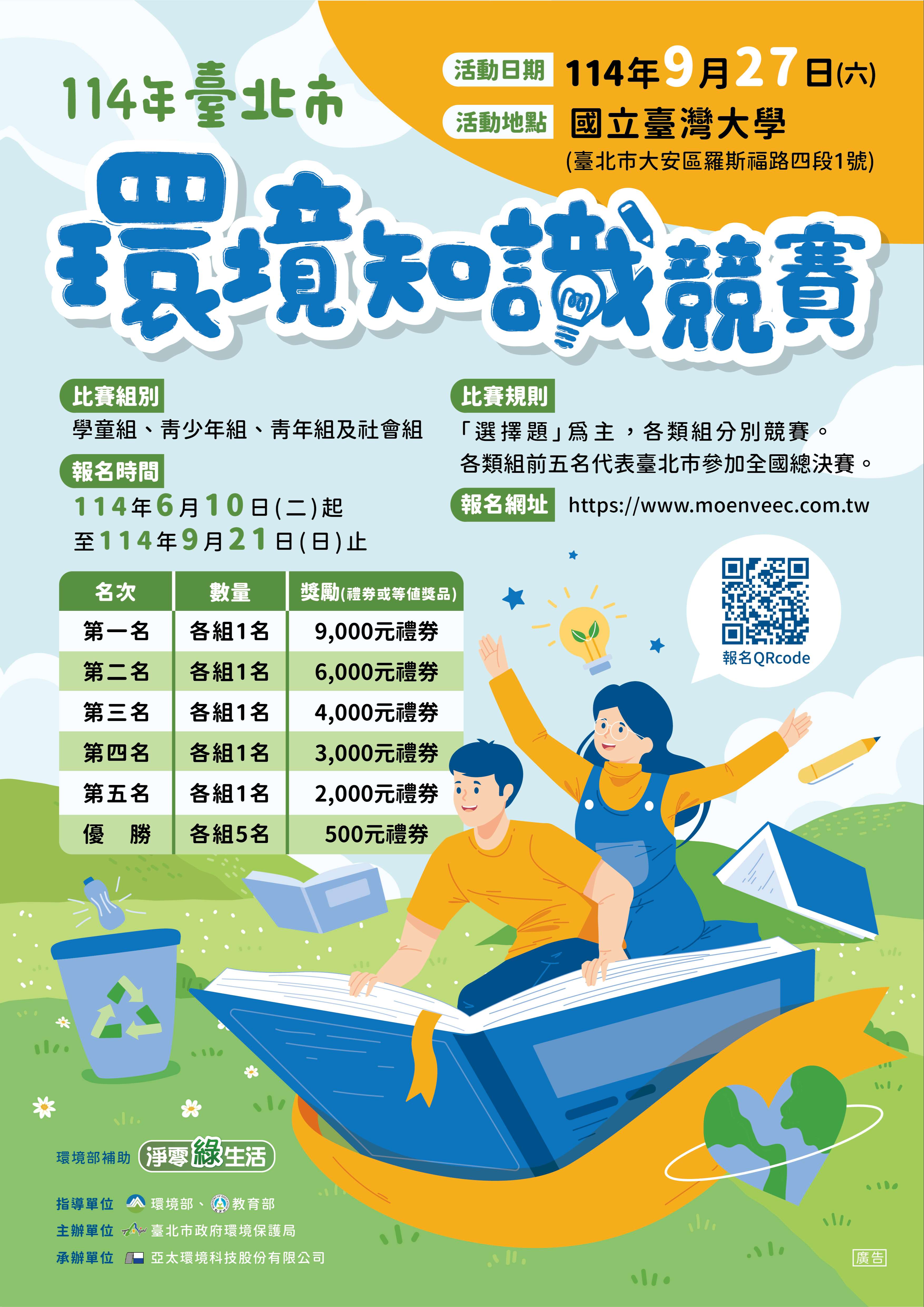 一、本市初賽報名日期為6月10日至114年9月21日止,一律採網 路報名,有意參加者請至活動官網(https://www. moenveec.com.tw/)登記報名。