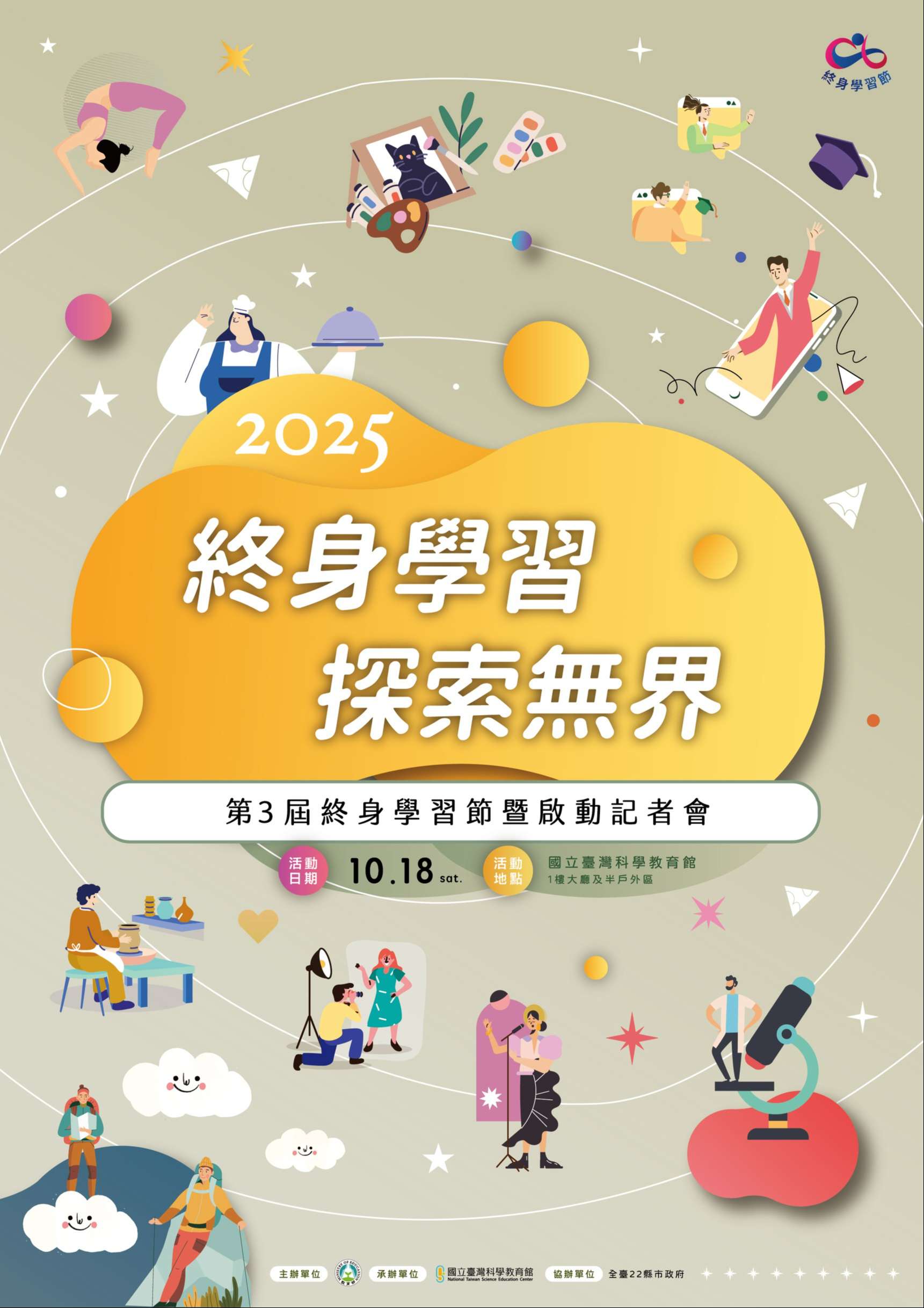 二、為提升國人終身學習意識,建構終身學習社會,教育部延 續112年辦理首屆終身學習節之基礎,特訂於114年10月18 日(星期六)假國立臺灣科學教育館辦理教育部第3屆『終 身學習節』啟動記者會。