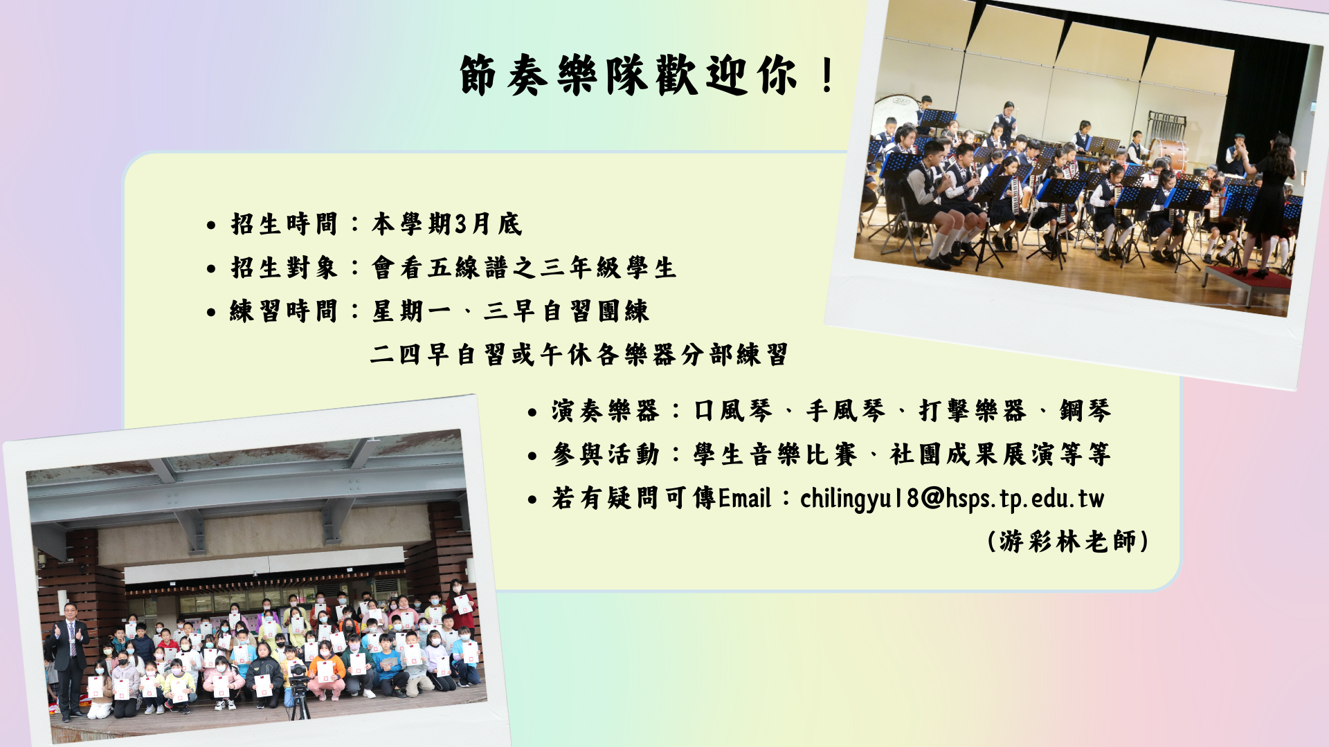 為了培養學生多元技能、發展音樂專長,特此進行節奏樂隊的招生。