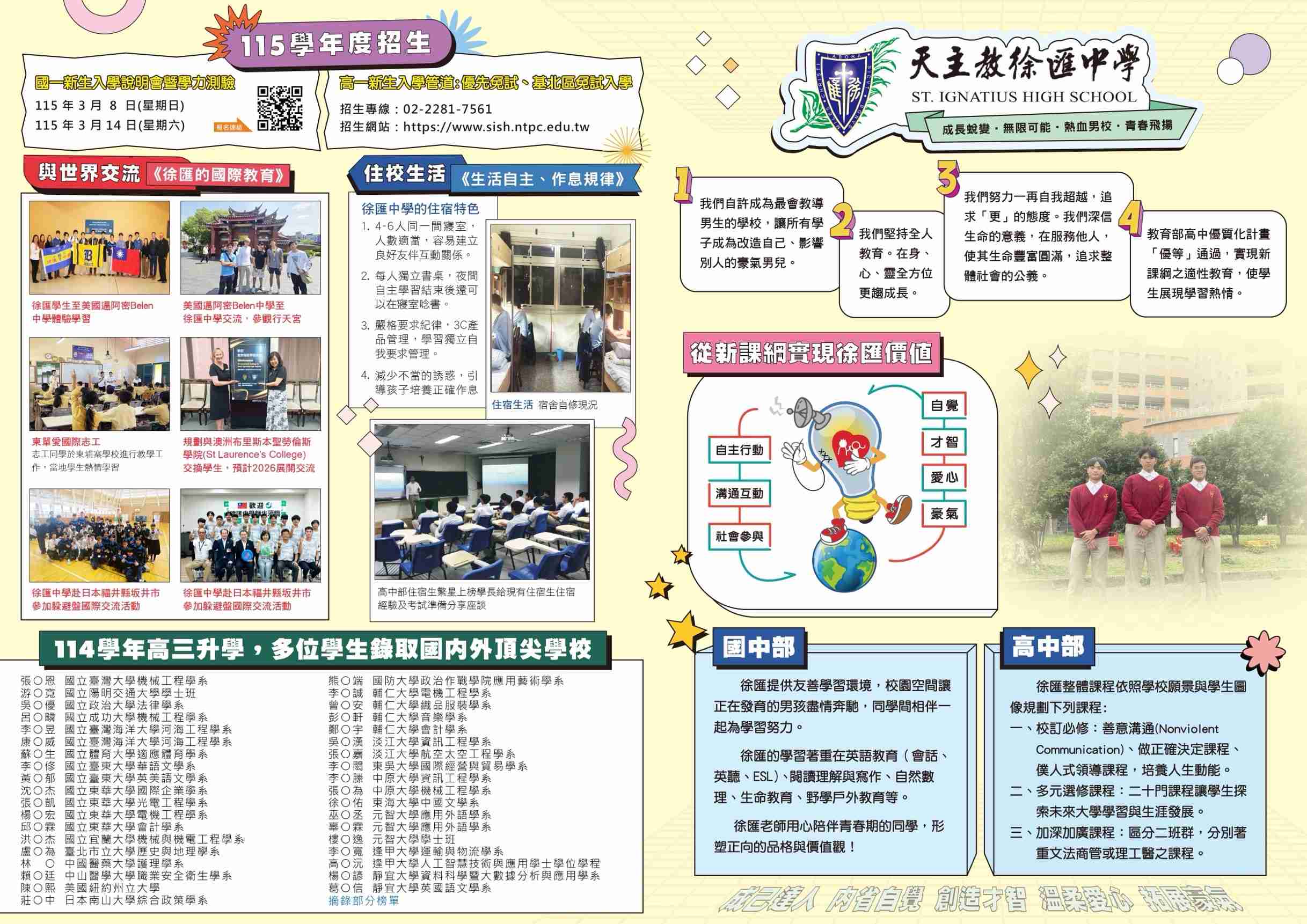 一、本校著重培育學生具備自覺、才智、愛心、豪氣四大能 力,歡迎貴校中高年級男生及家長參加本校辦理之新生說 明會。